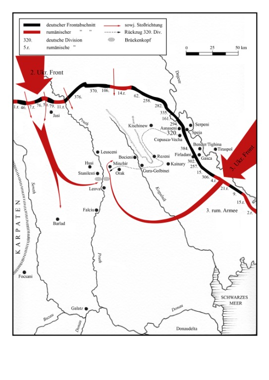 Skizze der Kesselschlacht von Jassy-Kischinew, August 1944